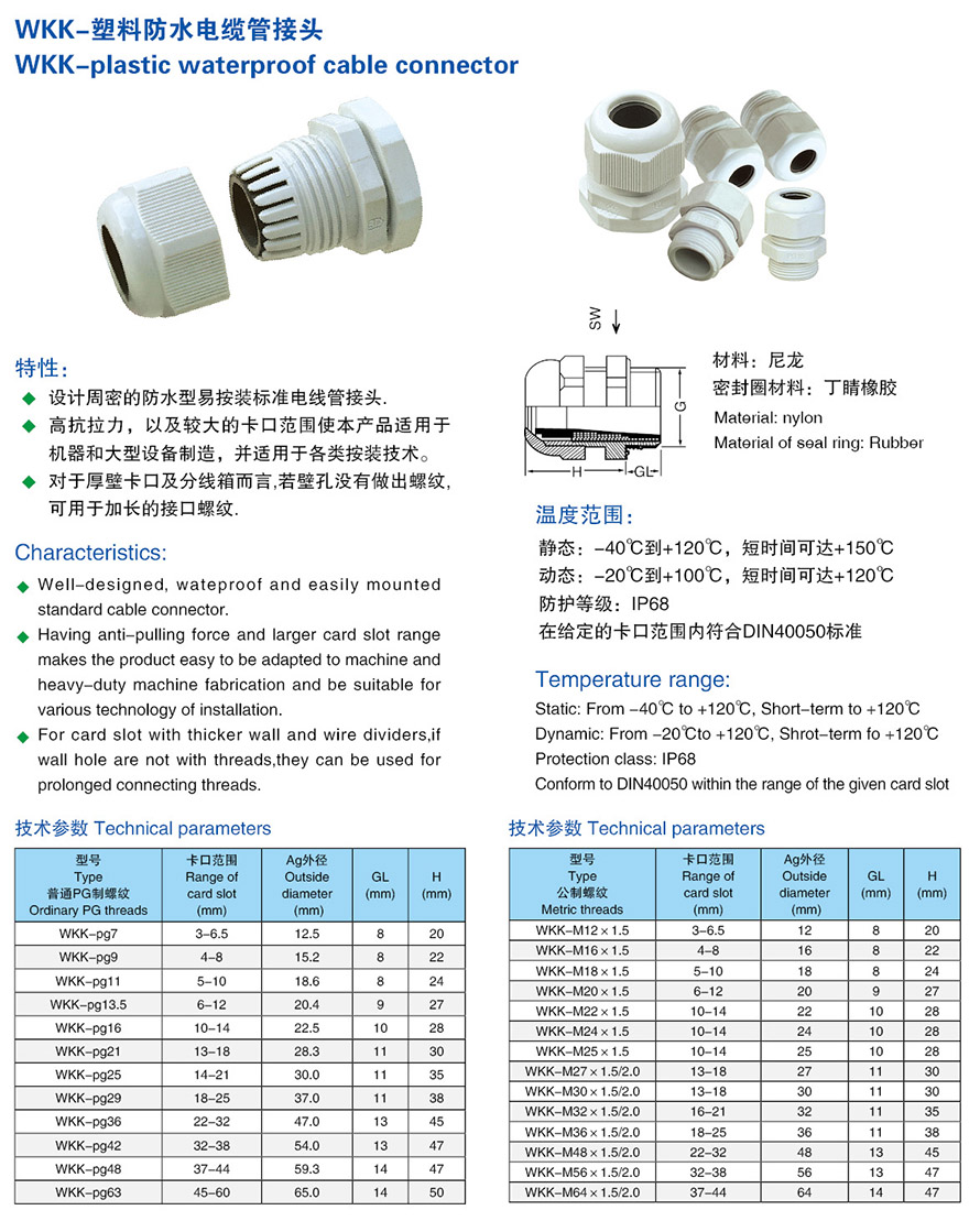 WKK-塑料防水电缆管接头